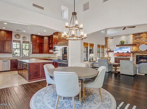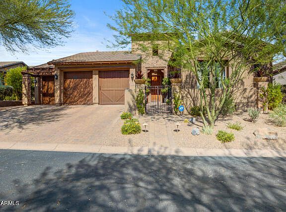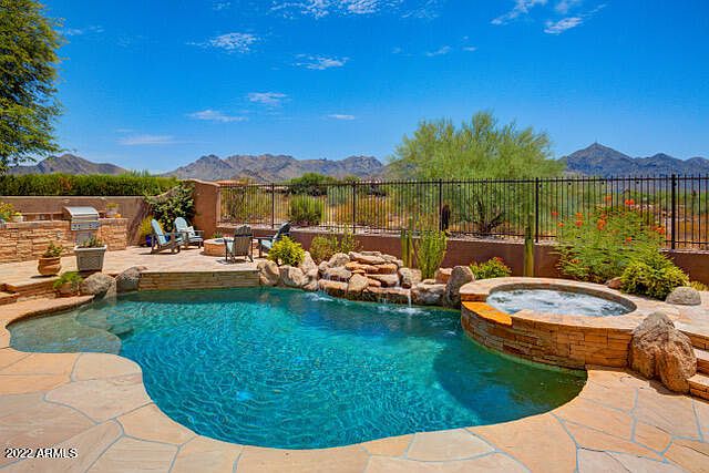 Lifestyle is Included w/Unobstructed Panoramic Views of McDowell Mountains. Views Views Views. Spectacular Gated, Cul-De-Sac Single Level home in prestigious DC Ranch. This Executive style family home has 4 bedrooms, + 2 Room Den, 3 1/2 Bathrooms, Gourmet Granite Kitchen, Stainless appliances, Wood & Travertine Flooring, Stacked Stone Fireplace, walk-in Master Shower w/Separate Soaking Tub. Master Bedroom walks out to Sparkling Swimming Pool & SPA & the Mountain Views. With a 2nd outdoor living space/mid-courtyard featuring a built in Fireplace/ Fire Pit & BBQ Grill. The Gated Neighborhood of Desert Haciendas within DC Ranch features tree lined streets & a centerpiece Grassy Play Park. Private & Community Pools, Clubhouse, Parks & Amenities, Location, Location, Location.