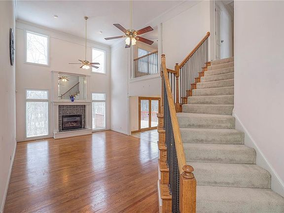 This One Owner Home Is Surrounded By Majestic Trees and Park like setting. Spacious private lot on cul de sac .This 2 story Hearth room is open to kitchen and dining . An abundance of windows providing plenty of natural light. Very inviting and spacious. The loft above overlooks the captivating fireplace creating a cozy ambiance. Potential Suite in the lower level to include a kitchenette and walk out. Spacious Master suite separate shower and jetted tub with lots of closet space. Oversized rooms are enjoyable and entertaining .The lovely outdoor space is great for BBQs or relaxation. If you have a pet there is a fantastic underground dog fencing system just for your fur member of the family. Home is close to Highway Access. Minutes from the Legends for shopping, food, and entertainment.