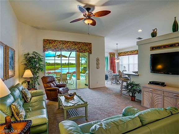 Enjoy the fantastic Southern lake view in this lovely two bedroom plus den single family pool home. Miromar Lakes features 700 acres of fresh water lakes, with boating, fishing, swimming, water skiing, 3 miles of sand beaches, Caribbean style beach grill, club house, pool, full service spa, fitness center, equity golf, tennis and many other fantastic amenities. Miromar is just 10 minutes from Southwest International Airport and next to Florida Gulf Coast University with large shopping malls within minutes.