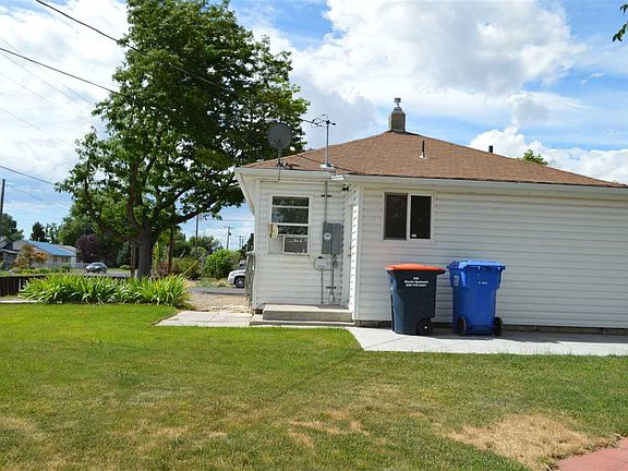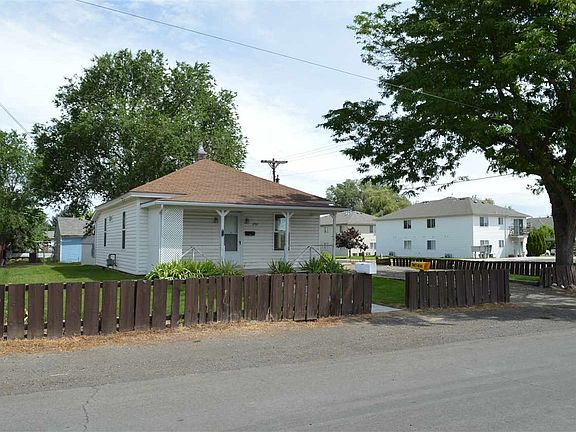 Very well cared for and clean home located on large corner lot. Low maintenance exterior with vinyl siding, covered front porch, sprinkler system, partial fence, ample parking, storage shed, corner lot and mature tree for shade. Interior offers natural lighting, living room off entry, two bedrooms and full bathroom, kitchen with back porch that lead to basement with utility room and work shop area.