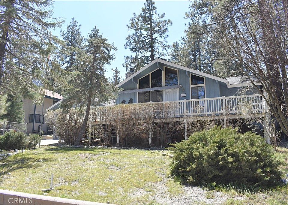 MOUNTAIN FAMILY HOME IN PICTURESQUE WRIGHTWOOD! Featuring 3 bedrooms, 2 bathrooms, a LARGE BONUS ROOM (permitted) and an oversized 640 square foot 2 car attached on a 7500 square foot lot, this one is sure to please. Outside...AMPLE PARKING WITH ADDITIONAL PARKING AREA NEAR STREET, LARGE DRIVEWAY AND PLENTY OF ROOM FOR THE RV OR TRAILER. The big front deck sports TREX material and VINYL RAILING for easy maintenance and perfect for the Summer BBQ and entertaining. Large windows above entry that face East allow the morning sun to pour in to the living room. Fully fenced in the back for the pups and pride of ownership on exterior maintenance! Inside, your front entry leads to an awesome living room to kitchen area with impressive river rock wood burning fireplace and large mantle to set the mountain vibes into full effect. The well appointed kitchen features a gas range and double oven, dishwasher and plenty of cupboard and counter space for the appointed Chef! The large bonus room is perfect for a family room/den/craft room or office area...or an additional bedroom. Options, options, options! Three nice sized bedrooms and full bathroom, this nifty floor plan has it all. Upgrades include a newer A/C unit, forced air central heating, water softener, and a large loft area above garage for plenty of storage. The Wrightwood trail is a close walk to the Village with its shops and restaurants, Country Club and lots of walking and hiking options nearby. Change your surroundings and come to the clean air and four seasons the little town of Wrightwood is famous for!
