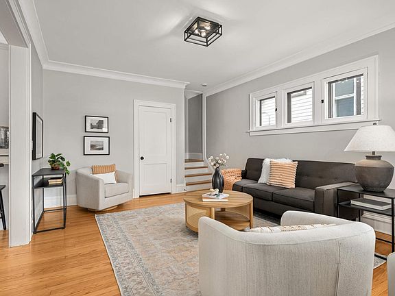 find a new 1/2 bath on the main floor. Upstairs offers three nice sized bedrooms with a completely new ceramic tiled bathroom. The lower level has tons of potentially and could easily be finished for more living space. The backyard has a new deck and offers a two car garage. Many of the windows have been replaced along with updated electrical and plumbing. This home is move in ready and offers walkability to many shops and restaurants.