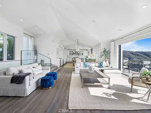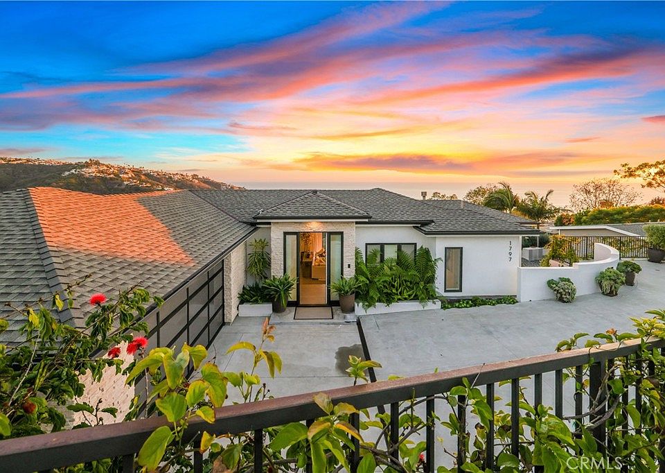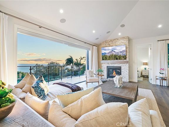 Look no further; we've found the ideal house for you! Situated in the hills in Laguna Beach, this home rebuilt in 2019 is a one-of-a-kind gem you cannot miss. We are confident you'll fall in love with this home as soon as you lay your eyes on its craftsman-style construction. Step inside and delight in the open-plan living/dining area, with beautiful wide-plank French oak floors, stunning high ceilings, an elegant fireplace, and jaw-dropping ocean views from every room (even the driveway enjoys them!). The kitchen is a true entertainer's dream, with lots of storage room in its ample white cabinets, a chic tiled backsplash, modern appliances, and an oversized bar for cooking, eating, or enjoying pre-dinner drinks. Adjacent to it, the breakfast nook is filled with light coming from the sliders that lead outside. The expansive main suite boasts two sizable walk-in closets, large bathroom with dual sinks, soaking tub, and accordion doors that open the entire length of the wall to create an indoor/outdoor atmosphere with its oversized balcony. There are 3 bedrooms downstairs and an room on the main level perfect for an office or guest suite. Not only do you have 3 large balconies to enjoy the ocean, city light and mountain views, there is also a large backyard with multiple citrus trees as well as a large mature avocado tree. The property also has plans on file to expand the back yard with a California room and pool.