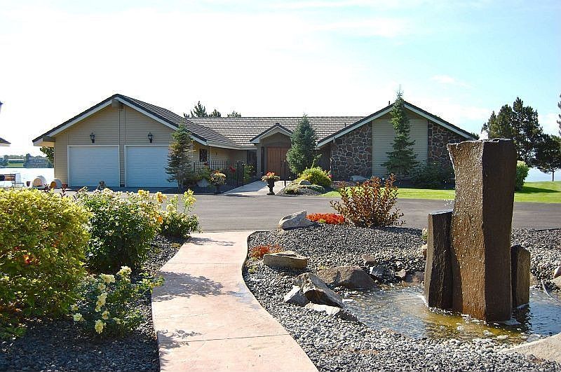 450' of amazing lakefront on 3 acres. Celebrate life in this 4 bedroom, 3.5 bath dramatic home. Impressive details include teak floors, granite countertops, pella windows, huge stone fireplace in the living room, & a lakeside hot tub. This stunning rambler with full daylight basement has a deck & patio, dock, boat launch, boat/jet ski lifts all at the water's edge. A water feature by the lake and basalt fountain in the front complete this wonderful property.