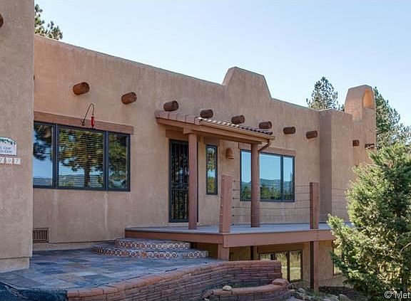 Take in the views from this five bedroom Santa Fe style home in Perry Park East. Situated on five very private and usable acres and featuring an open and bright floorplan with large windows which frame the mountain views, evergreen trees, and meadow beyond. This property is a garden-lover's delight complete with two greenhouses and a fenced outdoor garden area. Also included is a private seasonal pond with surface water rights. Perfectly located with I-25 access just a few minutes away, 15 minutes to Castle Rock, and only 30 minutes to the Denver Tech Center or Colorado Springs. This is your chance to live in the serenity of "the country" and still be close to work commitments, schools, and your family's recreational activities.