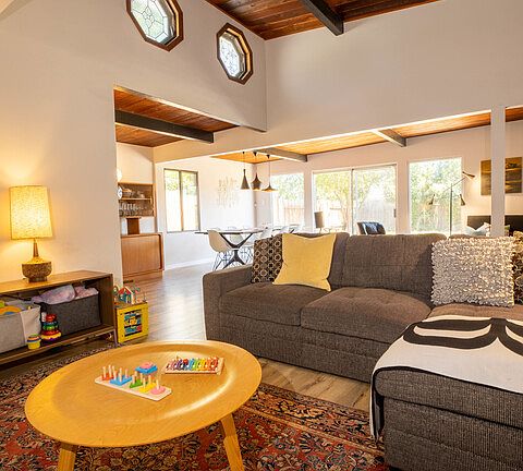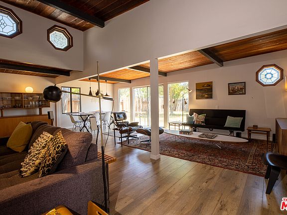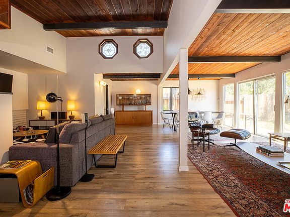 Remodeled Mid-Century home designed by famous architect Edward Fickett (designer of Dodger Stadium). Ideal family home with 3 bedrooms, 1.75 baths, 1428 square feet of living space and located on a tranquil, quiet street. Original home is part of the Meadowlark Park tract, winner of the Practical Builder Oscar award at the National Home Builders Association in 1953. Open concept layout, high ceilings, exposed beams coupled with large clerestory windows giving it tons of natural light and a spacious feel. Private backyard with fruit bearing citrus trees is perfect for entertaining. Cozy stone-faced wood burning fireplace in living room. Home boasts of many upgrades for modern living - a 200 amp electrical panel, nest thermostat, ring doorbell with video cam, all new appliances and solar panels. Roof, HVAC, sprinkler system and modern roll up garage door installed in 2018. Own a perfect combination of California architecture and design with cost efficient modern living.