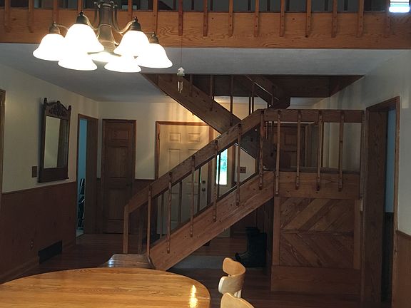 DISCLAIMER. No water seepage, even after the last storm. These photos and video are not done professionally. GREAT LOCATION! 3.28 acres, close to town, yet secluded, nearby trails 3 LARGE bedrooms Lots of oak and other wood interior Office on main floor that can be a small bedroom Attached two car garage pole barn ( two new man doors ready to install) well maintained updated kitchen 2804 square feet on top two floors 1748 square feet in basement (398 not finished) stays cool in the summer walk out basement with rec room, "bedroom", gun room, wood sauna, two man jetted tub. wet bar large finished bonus room above the garage LOTS of storage Main floor laundry Kitchen appliances included (newer) Oil furnace with wood stove on main floor Economical to heat Back deck is EASY to shovel, just push it over the edge Some furnishings negotiable established garden space and apple trees CFR land in back beyond the stream Great place to raise your children