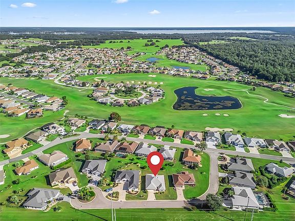 One or more photo(s) has been virtually staged. Stonecrest is a 55+ gated golf course community with all the amenities and 4 pools (one indoor), and just a Bridge Away By Golf Cart To The Villages! PRICED TO SELL! Fantastic Home, Fabulous Price! Charming 3/2 Chestnut model built by Armstrong with a 2 Car Garage located on a Quiet Cul De Sac street situated across from the dog park! This lovely home has Room for a Pool, and presents Tremendous curb appeal featuring Professional Landscaping, and an Elegant Covered Front Entrance, ROOF 2022, Vaulted Ceilings, an Open Concept and Split Floor plan with a Dining and Living Area combination. As you enter into the foyer you are greeted by Vaulted ceilings, and a lovely Dining area to the left with an Upgraded Chandelier, and the Third bedroom to the right with elegant Glass door access. The Spacious Living area provides sliding door access to the Enclosed Lanai, creating a Spectacular Space for Social Gatherings, and Relaxing with Family! The Open Eat In Kitchen is abundant with Natural Sunlight, and showcases a Coffee bar, Large Pantry Closet, Wood cabinets, Lazy Susan, and Convenient sliding doors to the Lanai. The Split Floor plan provides Maximum Privacy for both the Owners and their Guest, with the Primary Suite commanding one side of the home, while the guest bedrooms and bathroom are located on the opposite side of the home. The Primary suite offers a Walk in Closet with Built-Ins, and an En Suite bathroom with a Two Sink Vanity, Walk in Shower, and Private Water Closet. The Second Bedroom features a nice size built in closet and Plantation Shutters, and the Third Bedroom showcases a Glass door entry, Built-Ins, and a closet, providing plenty space, and convenience for your guests! The Enclosed Lanai, creates a Fantastic Additional Living Space, perfect for Enjoying Outdoor Dining, Beautiful Florida Sunsets, and Tropical Breezes! The Oversized Beautifully Landscaped Backyard is sure to please providing a Private, Peaceful Retreat in Your Own Backyard with Room For A Pool! HVAC 2016. Stonecrest is a 55+ gated golf course community with all the amenities, pools, pickleball courts, softball, 18 hole championship golf course, Broad Stripes Golf & Social Club and over 80 different clubs to join! As a Private Gated Golf Course Community, you can expect a high level of Privacy and Security. Overall, this home offers a combination of Great Outdoor Space, Convenient Features, a Desirable Location, and a Secure Community Setting. A WONDERFUL LIFESTYLE AWAITS YOU IN STONECREST!