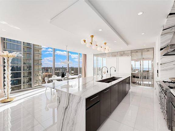 Experience unrivaled luxury at The Estates at Acqualina in this meticulously crafted 4-bed, 5.5-bath residence, offering breathtaking ocean & city views in Sunny Isles Beach. This sky-high sanctuary features a private elevator foyer, a chef’s kitchen w/ Wolf appliances, & a summer kitchen on the terrace. Significantly upgraded w/ top-level interior design, this rare 01-line layout offers more expansive living areas compared to the typical 5-bed configurations. The lavish primary suite boasts his-&-her baths & expansive custom walk-in closets, all framed by sweeping ocean vistas. Indulge in 45,000 SF of world-class amenities, including an ice-skating rink, bowling alley & resort-style pools. Just steps from the beach, embracing a vibrant and sophisticated oceanfront lifestyle.