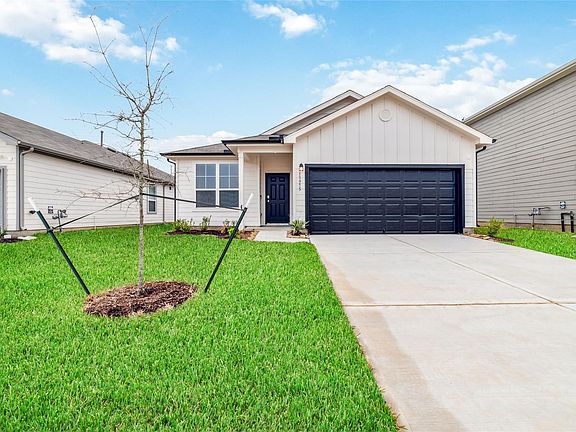 This 3-bedroom, single-story home is ready for move in. The front study, with its large window and beautiful glass French doors, sets the tone for a bright and welcoming space. The family room seamlessly connects to the open kitchen and dining area, featuring a stylish island kitchen with granite countertops, and upgraded Whirlpool Stainless Steel appliances, including a 5-burner gas range. Washer, dryer, and refrigerator are all included for your convenience. The Owner's Suite is a retreat with a large walk-in closet, dual vanities and an oversized walk-in shower with ceramic tile surrounds. Enjoy luxury vinyl flooring throughout the home, with plush carpeting exclusively in the bedrooms. Outside, the fully fenced backyard comes with sod and an irrigation system. Conveniently located near US-290 and TX-99. Less than 15 minutes from the Houston Premium Outlets & a general hospital. Community amenities include a pool, basketball courts, playground and grilling/picnic area.