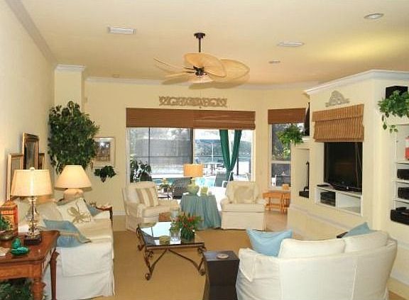 Spacious and bright two-story villa with stunning lake views and southern exposure. 3BR + Den + Loft, 3 full baths and 2-car garage. Beautifully appointed with plantation shutters, crown molding, tray ceilings, hurricane shutters and NEW A/C IN 2010. Bonus room/loft on second floor plus guest bedroom and full bath. Superb location within wallking distance to Pelican Marsh Golf Club. Residents enjoy on-site tennis, fitness center, miles of walking/jogging/biking paths and beach shuttle to Wiggins Beach. Private golf memberships available for purchase.