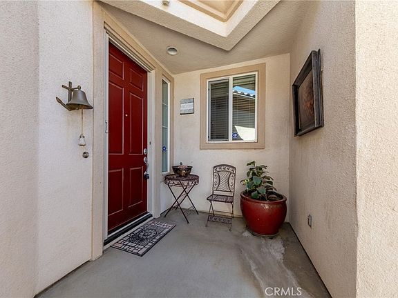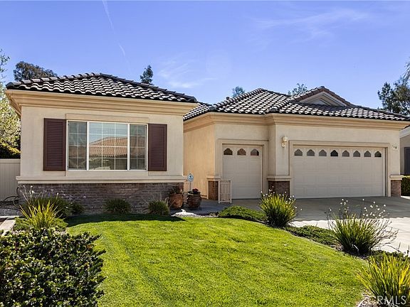 This stunning “Emerald” model is located in the guard-gated community of Solera, offering a view of the Golf Course and stunning view of the mountains and beautifully landscaped front and rear yards. Upon entering, you are welcomed by an open and inviting floor plan, accentuated by tall ceilings. The kitchen features a large granite countertop with seating, ample cabinet space, and stainless steel appliances. The laundry room has a sink, overhead cabinets, and a closet. The open layout seamlessly connects the dining area to the family room, which boasts a handcrafted custom-built wall unit that stretches across both sides of the fireplace. Large windows and French doors lead out to the patio, enhancing the natural light in the space.