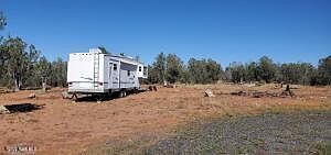 Location Location Location! Four 10.29-acre pre-developed parcels with groomed gravel roads in a fully fenced gated community, No HOA, electric at the street, new septic 4 bed/3 bath, 1550 gallon tank with 2 compartments, 200 ft of infiltrator leach field. 2005 Dutchman travel trailer has solar and propane generator. Investor opportunity for Airbnb, tiny homes, or camping in style. Community 10 minutes away has two new large truck stops showing growth and need for additional housing. Mature shade and privacy trees, mountain views that provide a picturesque backdrop for your outdoor adventures, hiking, ATV, horseback riding, camping, ranch, retreats, and unforgettable BBQs with stunning sunrises and sunsets. Experience the magic of star gazing at its finest. 30 minutes to Williams, 50 minutes to Flagstaff, 60 minutes to Prescott, and just 60 minutes Grand Canyon.Two 13.2-acre lots adjacent on Terry Ln. backs to state land.