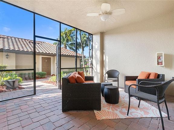 ***Motivated Seller – Bring All Offers!***Gorgeous BUNDLED GOLF veranda! Experience the pinnacle of resort-style living in this impeccably maintained first-floor unit, nestled within the exclusive Bonita National Golf & Country Club. This 2-bedroom + den, 2-bath home offers nearly 1,400 square feet of beautifully designed living space. Step inside through the screened front lanai to find an open floor plan showcasing diagonally laid tile and elegant crown molding throughout the main living area. The kitchen features granite countertops, stainless steel appliances, an eat-in dining area, and a breakfast bar. A spacious primary suite is complemented by a tray ceiling, two walk-in closets, dual vanities, and a glass-enclosed, tiled shower. Luxury Vinyl Plank flooring has been newly installed in the bedrooms and den. The outdoor space is equally impressive with an additional screened lanai in the rear with picturesque views of the lush golf course and serene preserve. IMPACT windows and a detached 1-car garage provide added convenience while additional improvements include a newer water heater, new dishwasher, and no-see-um screens installed in 2022. Bonita National offers an unparalleled array of amenities including a Championship golf course, resort-style pool and spa, clubhouse, beauty salon, cabana, fitness center, lap pool, putting green, restaurant, sauna, tennis courts and more. Located in the heart of Bonita Springs with easy access to pristine beaches, vibrant shopping and dining options, and the best of Southwest Florida, this property offers a luxurious, maintenance-free lifestyle perfect for year-round living or a seasonal retreat. Whether you love it as is or dream of customizing it with your own furnishings, explore the potential with our reality renovation/staging services which takes virtual staging to the next level. *DESIGN SERVICES INCLUDED, MAKING UPDATES, AS SHOWN, EASY FOR THE BUYER.*