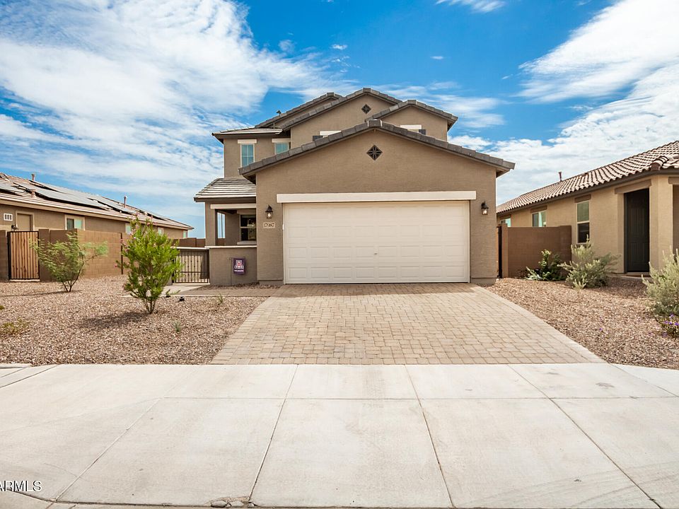 Welcome home! This almost new 4 bedroom, 3 bathroom home features premium tile flooring, neutral color palette in an open floorplan. The kitchen offers high end appliances, granite countertops, luxe cabinetry, and overlooks living and dining area with access to back patio. Upstairs enjoy bonus space in the loft, perfectly sized secondary bedrooms and a master retreat with dual sinks, oversized shower and spacious walk-in closet! The backyard is complete with covered patio extended with custom pavers + turf, and low maintenance plants-perfect for entertaining! All of this in the sought-after city of Goodyear! Around the corner from neighborhood park and playground. This community is close to everything Goodyear and Phoenix has to offer!
