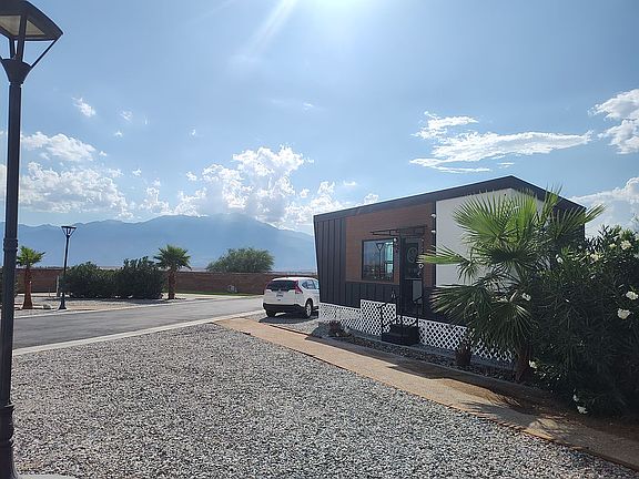 The murphy bed area doubles as a cozy gathering nook with banquette seating and two beautiful picture windows framing the gorgeous mountain landscapes. The tiny home is sited on one of the most spacious lots in Paradise Tiny Home Community with fantastic unobstructed mountain and desert views. There's plenty of space on the lot behind the tiny home (about 300 sq. ft.) to build a nice deck and/or backyard porch area.