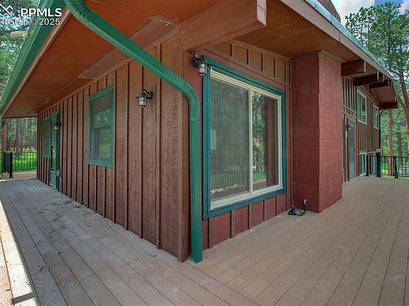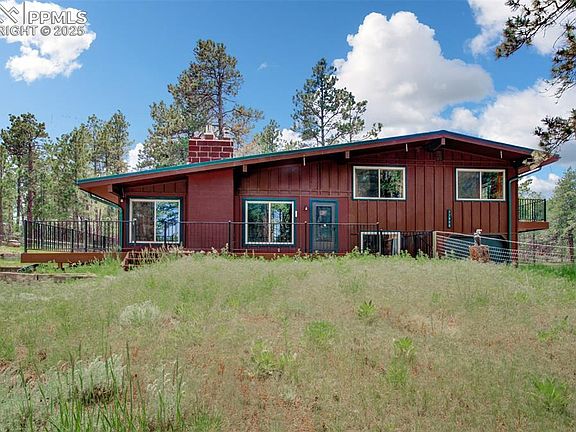 Welcome to this stunning 4 Bed/ 3 Bath 2,632 SqFt home that sits on 5 peaceful acres in one of Monument's most sought-after neighborhoods. The wood floors have just been refinished. You will enjoy the updated kitchen with stainless steel appliances that look into the family room with a brick fireplace. There are 3 well appointed bedrooms upstairs. One of the unique features of this home is two of the bedrooms have access to a outdoor balcony to really take in the outside beauty from the comfort of their bedroom. There is a fourth bedroom on the lower level next to a updated bathroom. The basement is finished with another cozy brick fireplace and has a walkout to a dedicated patio and additional driveway. There is an expansive Trex Composite Deck that wraps around the majority of the home as well as a new backyard deck for your enjoyment of the beautiful meadow. There is a RV electrical hookup and separate septic. Additional improvements include a new AC installed in 2024, a new Furnace installed in 2023, and the basement was finished in 2021. This is a must see property! You will surely enjoy the open space, privacy, and room to breathe all within reach of nearby modern conveniences. Whether you are dreaming of a quiet retreat or equestrian living, this property has it all!