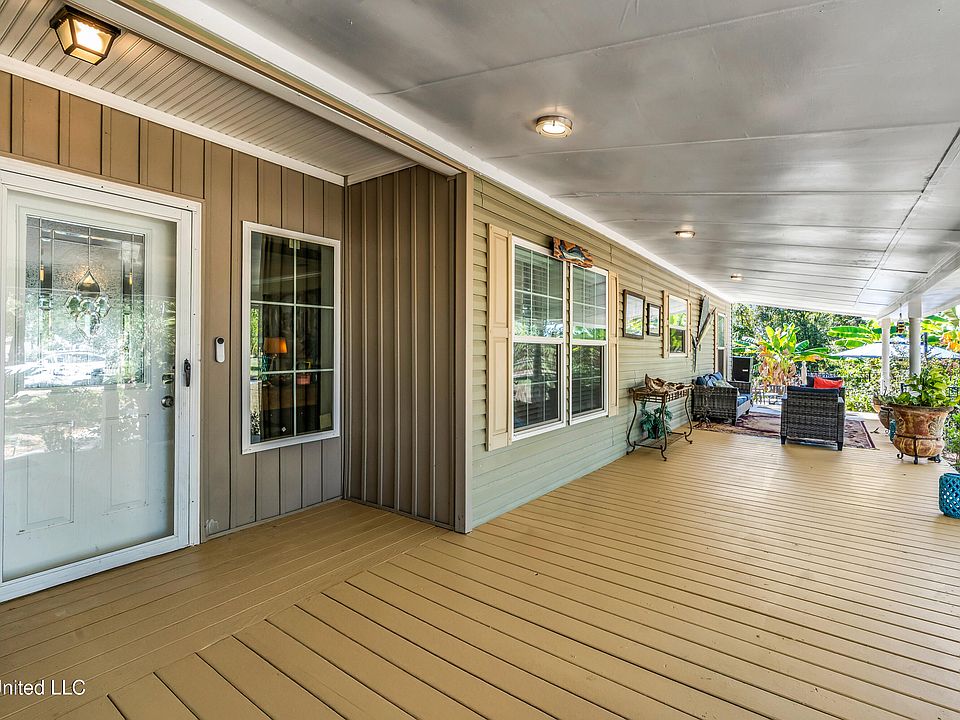 Modular home with covered porch (459 sq ft. ) Close to Bayou Coco. Flood zone not within 250 ft, of Property. This property has a carport and workshop. The carport has 6 bays which can be used for cars or equipment.