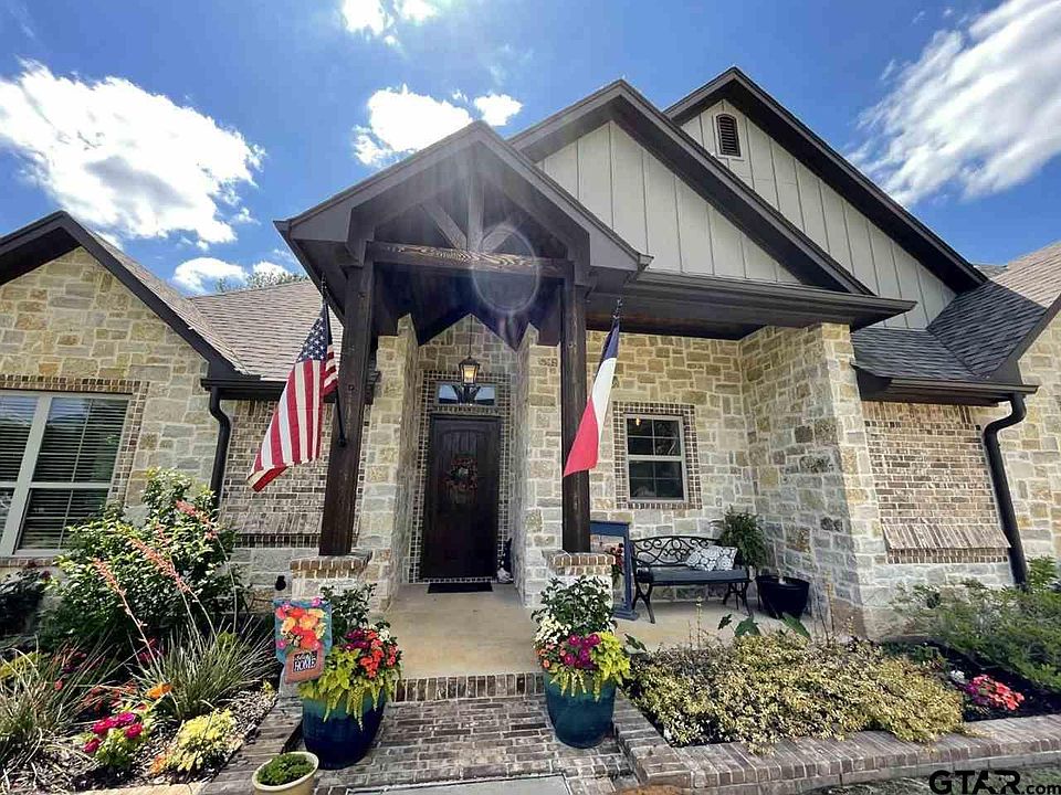 Custom built Trent Williams home in lake community on Lake Palestine. Short walk to the Villages Marina. Custom features about with a large chefs kitchen that includes a commercial 6 burner gas stove with griddle and pot filler, built-in commercial refrigerator/freezer, double ovens, stainless farmhouse sink, soft close cabinets/drawers, a large island and stunning granite countertops. Open floorplan with amazing acacia wood flooring and 12 foot ceilings with large windows in the living room, dining room, and kitchen that let in natural light. Private primary suite connects to large primary bath showcasing a huge master shower and walk in closet. Upstairs, offers a second living area with kitchenette, bedroom and full bath as well as walk-in access to the attic. Specialty granite featured throughout home as well as a gas fireplace, spray foam insulation and tankless water heater. Just over one acre lot, the property has a sprinkler system, beautifully manicured flower beds and a large fenced-in backyard and newly custom built playset. Villages Amenities include full-service marina, indoor waterpark, recreation center, 3 swimming pools, access to Beach Club, security, eateries. Hurry!