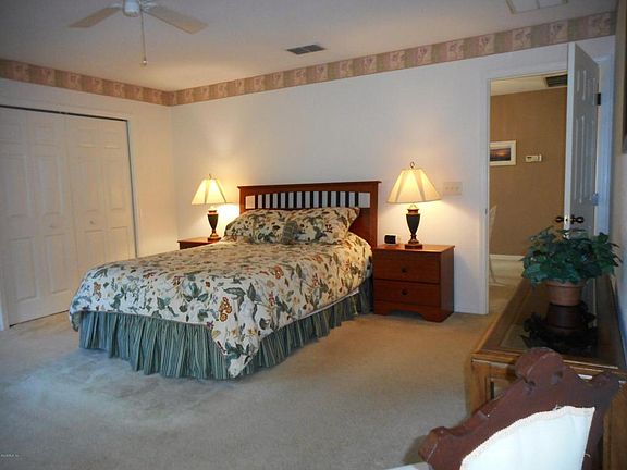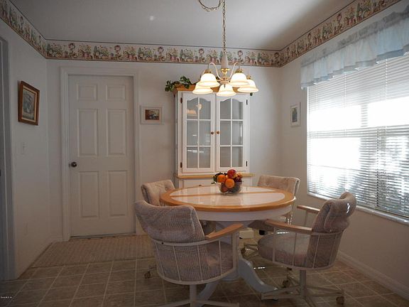Chestnut model that has been custom designed & has very generous rm. sizes. Separate eat in kitchen,wood kit. cabinets, a lg. closet pantry, comb din.rm. / liv.rm. Mstr. bdrm has a full length wall closet and room for all your furniture. Mstr. ba. has lg. vanity w/ one sink & makeup area & a large tiled W/I shower as well as a linen closet. Neutral colors, 4 solar tubes, lg. laundry rm., ceiling fans, enclosed lanai w/ ceiling fan & tiled floors. Architectural shingled roof, heat pump & h20 heater in the 2 car fin. gar.w/ sliding screen dr. & utility dr. Third bedroom does not have a closet.