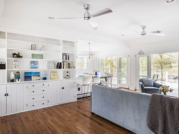 Experience easy, breezy Hamptons living in this quintessential summer retreat! Nestled on the edge of Beaver Dam Creek, this recently updated ranch offers amenities galore. Enjoy cocktails, kayaking or a variety of water sports from your own backyard, equipped with a dock and providing access leading to Moriches Bay. Inside, an abundance of windows flood the space with natural light, and a wall of sliding glass doors seamlessly blends the living area with the vast deck, creating an idyllic indoor/outdoor space overlooking pool and creek. The open concept living space is ideal for gatherings, while the U-shaped kitchen is fully equipped and boasts stainless steel appliances. A spacious primary en-suite features a king-sized bed, walk-in closet, and a fully renovated bath. The secondary bedroom boasts a queen bed, while the third bedroom offers two twin beds. These bedrooms share a hallway bath. The finished lower level offers a large bonus room and full bath, ideal as a work-from-home space.Entertaining is a breeze with an additional living space and half bath, as well as direct access to the patio featuring a large heated gunite pool, jacuzzi, outdoor seating, and direct access to the boat dock, creating the ultimate outdoor oasis. This home is tucked away down a flag lot, ensuring privacy, yet centrally located to all of Westhampton beach's amenities. Claim it while it lasts! Available July for $25k and any two weeks in June for $5k