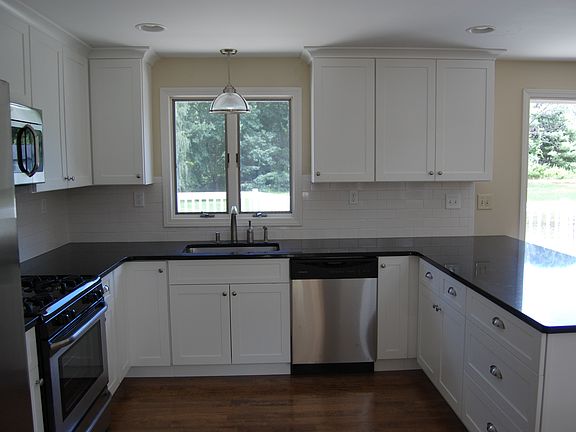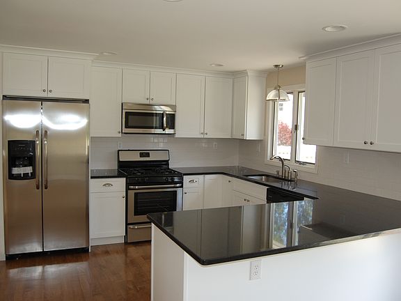 Rare opportunity to own this newly remodeled spacious 2,200SF split level ranch style home with legal In-Law apartment on lower level. Brand new designer kitchen has great layout, complete with white cabinetry, luxurious dark granite counter tops, gas range and brand new stainless steel appliances. Open concept allows for easy entertaining and family gatherings. Large living room with cathedral ceiling has brick fireplace with gas insert and newly refinished hardwood floors throughout. The bathroom has been fully remodeled and completed with designer tile and vanity. Large master bedroom with hardwood floors. Laundry hookups on both levels allow for independent living . Attic with storage decking. Over sized rear deck and storage shed. Level lot with oversize driveway and large back yard. Minutes to I-93 and a short walk to the Rockingham Rail Trail. Entire house has been updated and reconditioned for turn key ownership.....