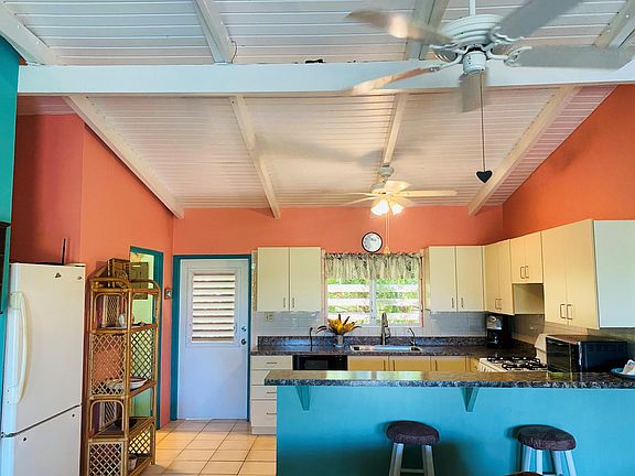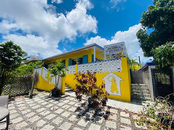 This can be your sanctuary..... Your lush, tropical oasis, quiet and relaxing. 3 bedrooms with office or 4 bedrooms, and 3 full baths. Delight in all the fun tropical colors, relax on the eastern gallery to catch the morning sun and breeze or enjoy your morning coffee around the pool with morning shade. Reap the rewards of the mature bearing fruit trees on the property which include Mango, Genip, Coconut, Carambola, Lime, Guava and Plum (local plum). The home is totally solar, NO electric (WAPA) bills, no outages! Completely fenced, very private location but yet so convenient. Just minutes to the beach and popular restaurants. Gallows Bay and Christiansted are just over the hill.