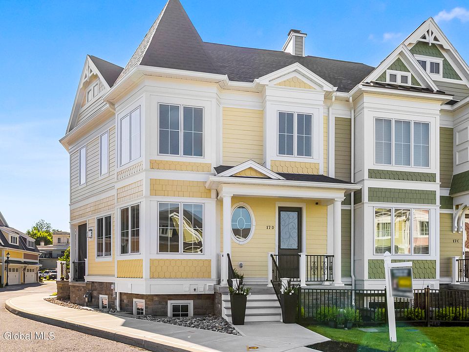 Discover Saratoga Victorian elegance in this exceptional end-unit townhouse. The largest unit in City Square, featuring 3284 sqft of thoughtfully designed space. Dramatic 2-story great room, featuring soaring ceilings & abundant natural light streaming through double-height windows. The gourmet kitchen showcases GE Café appliances, & a 6-burner range with double oven, perfect for culinary enthusiasts. 1st-floor primary suite offers convenient single-level living. 5 beds & 3.2 baths provide ample space for family & guests. The finished basement, with open staircase design & high ceiling, adds another cozy living space. Rare 3-car garage! The screened-in porch, with gas line for grilling, extends living space outdoors. Just 2 blocks from Broadway puts you at the center of vibrant city life!
