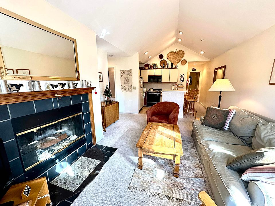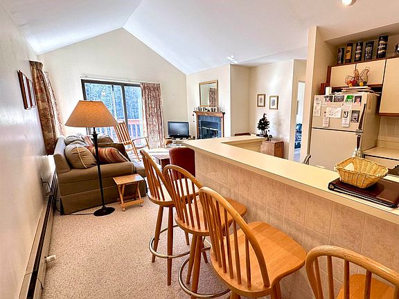Top floor, two bedroom, two bath condo located in the main base area of the Mount Snow Resort with beautiful mountain views! This condo is a very clean and bright end unit with extra windows that brings an abundance of natural light. An open concept floor plan with a large breakfast bar, wood burning fireplace, jetted tub in the primary bathroom and a deck off the living room to enjoy the spectacular views of Mount Snow! Snow Mountain Village amenities offer shuttle service to and from the mountain, an indoor pool, hot tub, sauna and outdoor tennis courts and storage. With heat and hot water included in the HOA fee and great rental potential, this is a perfect condo to enjoy year-round recreation!