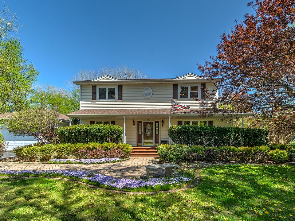 Country living with the comfort of modern lifestyle: The three level 5 plus one bedroom, 3 bathroom, 4500 sf living area dwelling -constructed with 2x6 exterior walls and 2x12 floors-is situated on just under 3 acres wooded land. The 200 sf porch at the main entrance curtained with flowering bushes, leads to the main entrance door. The first floor contains large kitchen, all stainless steal GE appliances, separate dining area and breakfast nook. Large living room, wood burning fire place in the family room that takes you to the all season room with hot tub hook-up, and a large deck. The first floor also conveniently contains a bedroom and bathroom with shower. Access to outdoor sitting area throughout the breakfast nook and French door. All of the rooms filled with lots of lights, calming view to the outdoors and crown molding. Direct access from the two car garage to the receiving area, adjacent to kitchen. Ample storages, wall to wall closets. Second floor has 4 bedrooms, large master bath with shower and bathtub, double sink. Playing area, laundry room with LG washer and dryer. Amazing view to the property and stocked pond that is 10 feet deep. Two decked attics. The lower level has a bedroom/fitness room, great room, large open space, dry kitchen with sink, microwave, and refrigerator hook-up, third bathroom, sum pumps with battery backup. All new mechanics, including water treatment/softener, furnace with less than 100 hours of usage, whole house fan, 3 ton condenser, new water pump. The shed size is 12'x24' for extra storage. Flood lighting for the backyard is installed. Additional parking on 10x30 parking pad. Excellent, move-in condition, freshly painted walls throughout. The zoning allows you to keep your own chickens! This house offers endless opportunities