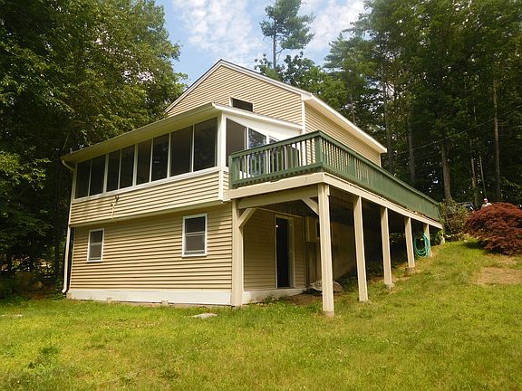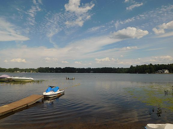 Looking for a property that offers peace and quiet? This nicely updated two bedroom, one bath home offers much. Cathedral ceiling with gorgeous wooden beams, loads of counter top and cabinet space in the updated kitchen, large family room with tons of natural light, an additional finished basement room, tons of storage and a lovely view of Half Moon Pond. Enjoy cozy fall evenings around your fire pit and oversized deck. Speaking of fall: the home boasts a nearly new pellet stove and a new furnace! Do you like to do woodworking? Check out the workshop on the lower level. Lake rights to Great Pond where the voluntary association is $95/year. Don't let this miss out on this great property! GPS may not be accurate: take a left on 10th Street. House is on the left. Offers due by Tuesday, August 24 at 6 pm.