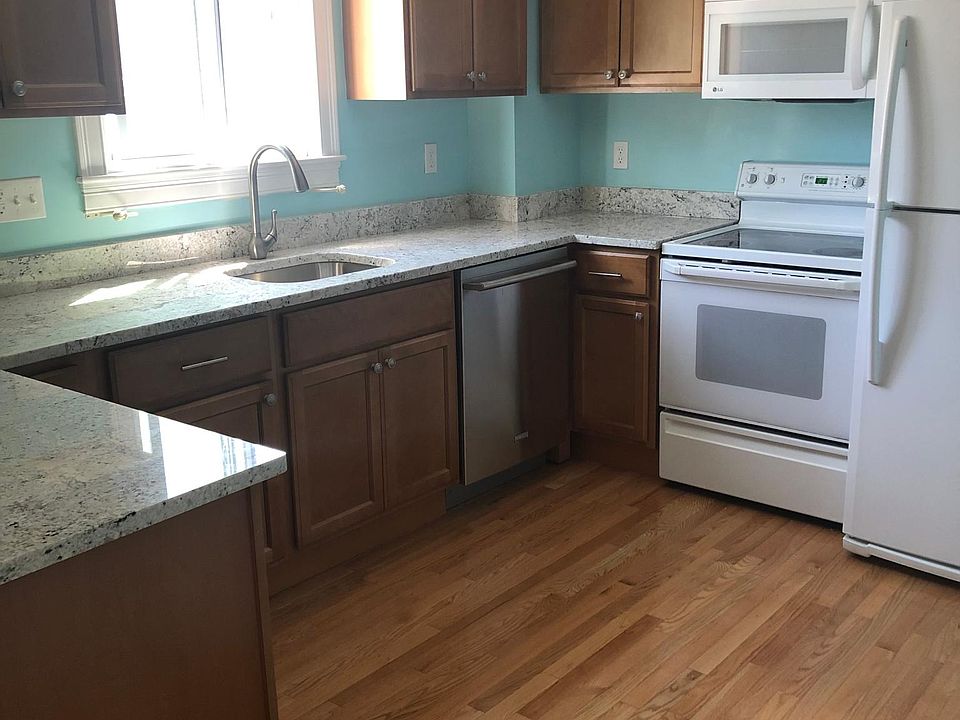 Granite countertops, hardwood floors, dishwasher and washer/dryer in unit.
