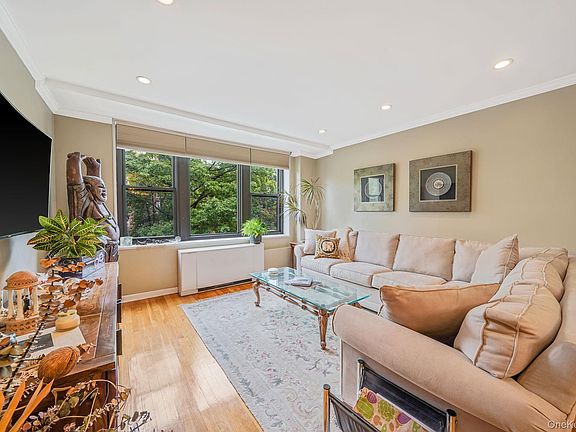 Bright, turnkey 2 bedroom with assigned parking located in the desirable Kennedy Street Quad. This meticulously maintained home features a renovated full bath with double sink setup, a two windowed granite kitchen with updated appliances, hardwood floors, recessed lighting, and elegant crown molding. An entry foyer opens to a sun-filled dining area and spacious living room with treetop views. Storage is plentiful with an oversized walk in closet, linen closet, additional hall closet, king-size primary bedroom with custom double sliding-door closet, and a second bedroom with its own built-in closet system. Updated kitchen features radiant kitchen floor heating and new stainless appliances. Three zone central air-conditioning and heat are included. Assigned parking space included, just steps from the building entrance. Well-kept elevator co-op offers lobby-level laundry and landscaped grounds. Ideally situated near Bay Terrace Shopping Center, Bell Boulevard dining, parks, golf, LIRR, Q28 bus to Flushing, and QM2/QM20/QM32 express buses to Midtown. District 25 schools nearby including P.S. 169, Bell Academy, and Bayside High School. One of the nicest units in Kennedy Street Quad that's move in ready. The current second bedroom is being used as an office giving great flexibility to maintain a home office or use as a second or guest bedroom.
