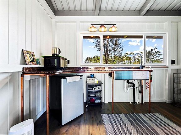 Furnished, very private cottage with expansive views on 20+ acres in Mountain View. Mauna Kea and distant ocean views. New queen bed, sunny deck, access to shared washer/dryer. 20 minutes to Hilo and Volcanoes National Park. 1500' elevation provides cooler weather. Renter is responsible for electric use for monthly rentals. Last month rent due 3 days before occupancy. Smoking is allowed outside.