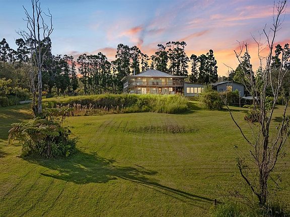Experience Ultimate Off-Grid Luxury on 5 Acres of Fully Fenced Prestigious Parcel in Glenwood on Big Island Hawaii. Stunning 80,000-Gallon UV-filtered Fish Pond & Waterfall make this Private Lush Estate a one-of-a-kind. Double-Walled home with Spacious Floor Plan designed to accentuate the Views of Your Nature Oasis! Fully Solar Powered with 24 Panels, Inverters, Batteries & a remote 10 kW Isuzu Generator for Backup plus a reinforced potable catchment system & pressure pump. A 20’x30’ greenhouse, 1,120 sf garage with ample storage that connects to the 880 sf carport / boat port. There is a goat shed, aviary & dog kennel perfect for farming or homestead living. Landscaping of this Level & Curated Lot includes beautiful native and exotic flowers & plants. Inside, discover T&G vaulted ceilings, solid oak cabinetry, gas on-demand water heater, pellet stove & massive covered wrap-around lanais on both levels—perfect for soaking in the beauty of the pond & property! This off-grid sanctuary combines serenity, sustainability & the Legacy Living Opportunity that you've dreamed of!