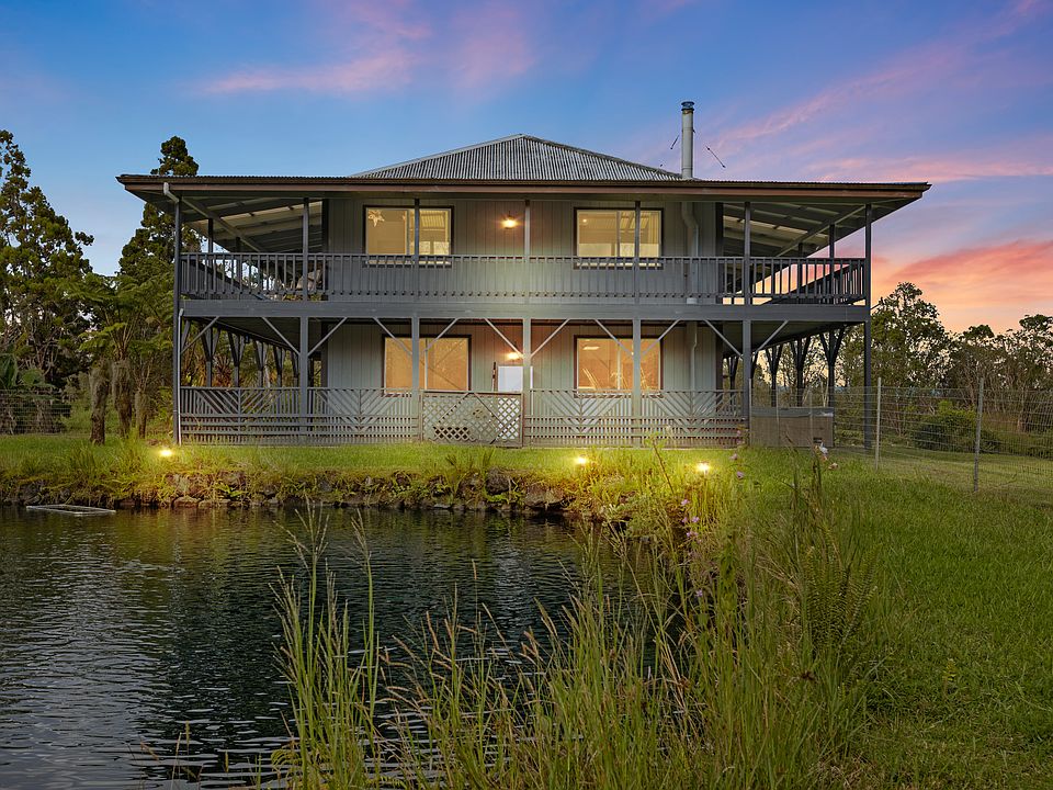 Experience Ultimate Off-Grid Luxury on 5 Acres of Fully Fenced Prestigious Parcel in Glenwood on Big Island Hawaii. Stunning 80,000-Gallon UV-filtered Fish Pond & Waterfall make this Private Lush Estate a one-of-a-kind. Double-Walled home with Spacious Floor Plan designed to accentuate the Views of Your Nature Oasis! Fully Solar Powered with 24 Panels, Inverters, Batteries & a remote 10 kW Isuzu Generator for Backup plus a reinforced potable catchment system & pressure pump. A 20’x30’ greenhouse, 1,120 sf garage with ample storage that connects to the 880 sf carport / boat port. There is a goat shed, aviary & dog kennel perfect for farming or homestead living. Landscaping of this Level & Curated Lot includes beautiful native and exotic flowers & plants. Inside, discover T&G vaulted ceilings, solid oak cabinetry, gas on-demand water heater, pellet stove & massive covered wrap-around lanais on both levels—perfect for soaking in the beauty of the pond & property! This off-grid sanctuary combines serenity, sustainability & the Legacy Living Opportunity that you've dreamed of!