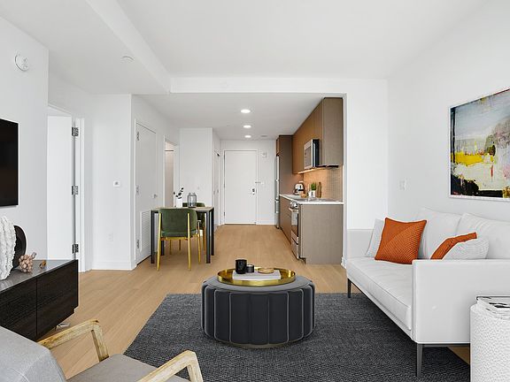 Designed by Perkins Eastman, with amenities designed by Lemay + Escobar, Brooklyn Crossing offers 51 stories of custom-appointed residences and amenities to create the next chapter in your life story. Studio and 1- to 3-bedroom apartments, with resident amenities designed for being still or being in the center of the action, whenever you choose. Here, space abounds to stretch solo or spin with friends in the expansive fitness center, make it a movie night in the resident Screening Room, or people-watch on the open-air rooftop complete with a Sky Lounge, outdoor pool, and 360-degree views stretching from the Manhattan skyline to Rockaway Beach. Situated in prime Prospect Heights, youre minutes from epic culture and culinary fare in every direction, including historic landmarks like the Brooklyn Academy of Music and dynamic new destinations like Barclays Center. Add to that 10 train lines one block away, and really, you can go anywhere you want from here. There is an optional amenity fee of $95 per person, per month.