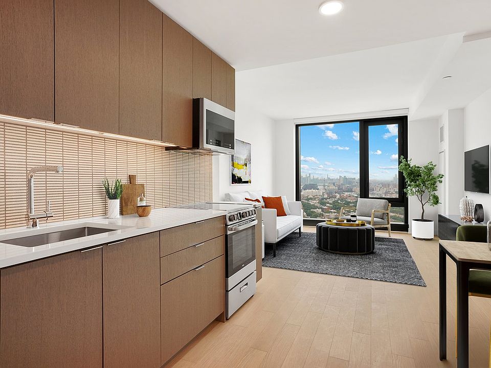 North facing 1BR home with Iconic views on the Manhattan Skyline and East River; featuring an in home washer / dryer. *Photo may not be of actual unit but are representative of interior finishes.