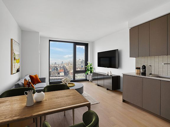 Our apartments can be experienced virtually with a 3D walkthrough or with a video call with one of our agents. APARTMENT DESCRIPTION: 1BD home with Statue of Liberty views featuring a walk-in closet, floor-to-ceiling windows, and in-home washer/dryer. *Photos may not be of actual apartment but are representative of interior finishes. BUILDING DESCRIPTION: Designed by Perkins Eastman, with amenities designed by Lemay + Escobar, Brooklyn Crossing offers 51 stories of custom-appointed residences and amenities to create the next chapter in your life story. Studio and 1- to 3-bedroom apartments, with resident amenities designed for being still or being in the center of the action, whenever you choose. Here, space abounds to stretch solo or spin with friends in the expansive fitness center, make it a movie night in the resident Screening Room, or people-watch on the open-air rooftop complete with a Sky Lounge, outdoor pool, and 360-degree views stretching from the Manhattan skyline to Rockaway Beach. Situated in prime Prospect Heights, you're minutes from epic culture and culinary fare in every direction, including historic landmarks like the Brooklyn Academy of Music and dynamic new destinations like Barclays Center. Add to that 10 train lines one block away, and really, you can go anywhere you want from here.