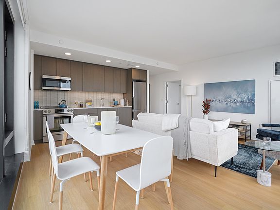 Our apartments can be experienced virtually with a 3D walkthrough or with a video call with one of our agents. APARTMENT DESCRIPTION: North East corner 2BR home with 2 full baths; captivating views of the Manhattan Skyline and glorious sunrise light. Large second bedroom and plenty of storage, as well as in-home washer / dryer and central heating / cooling. *Photo may not be of actual unit but are representative of interior finishes. BUILDING DESCRIPTION: Designed by Perkins Eastman, with amenities designed by Lemay + Escobar, Brooklyn Crossing offers 51 stories of custom-appointed residences and amenities to create the next chapter in your life story. Studio and 1- to 3-bedroom apartments, with resident amenities designed for being still or being in the center of the action, whenever you choose. Here, space abounds to stretch solo or spin with friends in the expansive fitness center, make it a movie night in the resident Screening Room, or people-watch on the open-air rooftop complete with a Sky Lounge, outdoor pool, and 360-degree views stretching from the Manhattan skyline to Rockaway Beach. Situated in prime Prospect Heights, you're minutes from epic culture and culinary fare in every direction, including historic landmarks like the Brooklyn Academy of Music and dynamic new destinations like Barclays Center. Add to that 10 train lines one block away, and really, you can go anywhere you want from here.