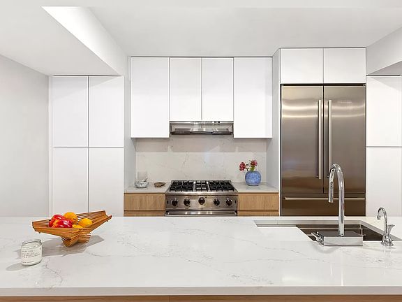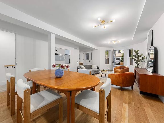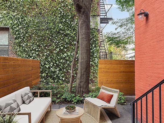Modern Luxury in Historic Park Slope. A stunning gut-renovated condo nestled within a 19th century brownstone in the Park Slope Historic District, this 3-bedroom, 2.5-bathroom garden duplex offers a trendy Park Slope lifestyle with a private backyard perfect for alfresco dining, grilling, and gardening. The aesthetic of the home is contemporary yet classic. Residents enjoy regal entry door framed by columns and triangular pediment. On the inside, an abundance of natural light highlights beautiful white oak floors, double-glazed Pella windows, and airy ceilings. The upper level has an open plan living room, dining room, and kitchen with lovely bay windows and plenty of space to entertain. The kitchen is adorned with an eat-in peninsula, gleaming quartz countertops and backsplash, custom cabinets, and high-end stainless steel appliances from Viking and Liebherr. The primary bedroom boasts a custom walk-in closet and a pristine en-suite bathroom with a custom vanity, gorgeous tilework, radiant heated floors, and a walk-in rain shower. The second bedroom has a large closet and access to the backyard, while the third bedroom can easily be used as a home office or nursery. Both bedrooms are down the hall from a second full bathroom with a deep tub. With a powder room and wet bar with a built-in wine cooler, the lower level of the home can flex as a formal dining and entertaining area or a luxurious den. An attached bonus room has potential as a yoga studio, library, or office. The home comes with a stacked washer/dryer from Whirlpool. 18 8th Avenue is a boutique condominium situated on one of the prettiest tree-lined streets in Park Slope. Residents enjoy close proximity to dozens of trendy dining and shopping options and easy access to the verdant fields and walking paths of Prospect Park. The building is close to the Grand Army Plaza Greenmarket, Montauk Club, Barclays Center, Brooklyn Museum, Brooklyn Botanic Garden, and Prospect Heights and Boerum Hill. Restaurants, bars, cafes, and the 2/3/B/Q subway lines are moments away. Pets are welcome.