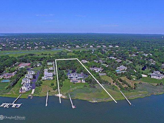 This stunning 6.2 acre estate is tucked away on secluded Apaucuck Cove. The well-appointed grounds boast over 300 ft of water frontage, deep water dock, subdivision possibilities, & so much more! Upon entering the foyer with the vaulted ceilings and double staircase, you'll see unimpeded views of the bay throughout the formal living room. The gourmet center island Chef's kitchen with granite counters, formal dining room, and breakfast nook, provide ample room for cooking and entertaining while enjoying the tranquility of the picturesque backyard. Just off the great room, a separate wing offers a billiard room and 4 en-suite bedrooms, 3 of which boast views of the bay and French doors to the backyard. The second floor features the exquisite master suite replete with large en-suite bath, sitting room, and private balcony. Across the the open hall, you'll find an additional en-suite bedroom & a bonus space perfect for an office or gym. Experience the beauty and serenity of the backyard by relaxing in the Jacuzzi tub, taking a dip in the gunite pool, or simply relaxing in the pool house.