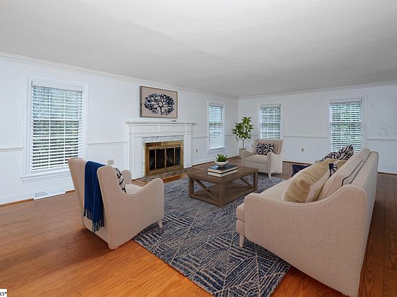 Discover this hidden Gem sitting on almost 1.3 acres in a highly desirable quiet neighborhood only minutes from Downtown Greenville. Very private surroundings. Come in and make yourself at home in this delightful 4 BR, 3 Full bath wood home where traditional Southern Charm meets Modern Comfort. The heart of the home is the totally renovated custom designed Kitchen with Gleaming marble countertops, a gorgeous tiled backsplash and shiny stainless steel appliances. Check out the new Coffee Bar ! You will love this new updated kitchen! Luxurious Wide Plank Oak Hardwood floors run-through the main level of the home. This home is great for entertaining with a large Living Room with a fireplace and then a den with a 2nd fireplace and a wet bar. Plenty of space to spread out! And you can entertain on the screened porch that leads on to a huge deck. The deck overlooks the large over 1 acre lot with plenty of trees and privacy. Also there is plenty of room for a pool if desired. Walk around to see the extra 1 car garage with a wonderful Greenhouse on the back, for all your flower and plant needs. Upstairs is the Master Bedroom with new carpet. There is a large shower and updated countertops in the bath. Whole House has just been freshly painted. There are 3 other bedrooms upstairs with a convenient laundry room. The Large Flex room is over the garage and has a Split system for extra heating or cooling. This system is new in Sept of 2023 as is the upstairs unit. The downstairs unit was purchased in June of 2020. The Flex Room is a great place for a home office or playroom for the kids. Conveniently located close to shopping, restaurants, and entertainment, this property is the perfect mix of tranquility and accessibility. 12 minutes from our great Downtown Greenville. Also Award winning Wade Hampton High School is zoned for this home. Home is down the street from the Pebble Creek Country Club with 27 golf holes and a large swim facility, if you are interested in joining for a separate membership. Don't miss your chance to own this little slice of paradise.