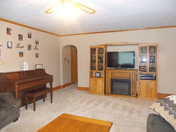 Move in ready raised ranch sitting on lot. that is 1 acre plus with fruit trees, garden space and outbuilding with power. Seller states hardwood under carpet. Living room carpet is 2 years old and water heater one year old. Formal dining, family room in basement with wood stove heat, master bedroom has skylight, large deck for entertaining. Double hung windows, covered front porch.