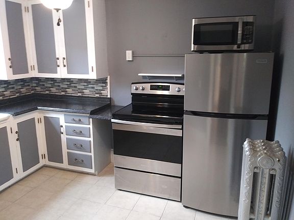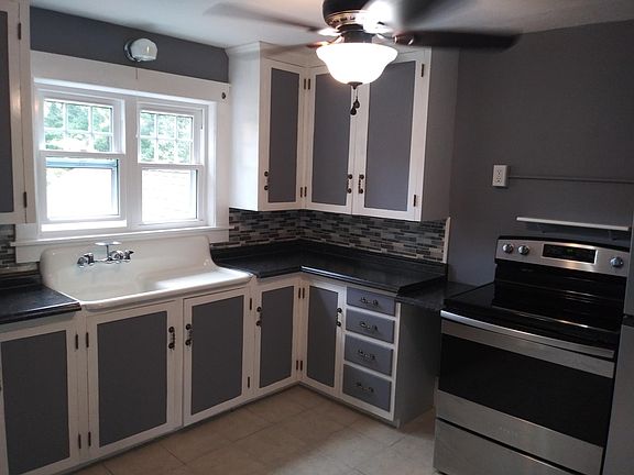 Features include new energy star windows, an eat-in kitchen with stainless steel appliances tile floors. The living room has the original oak flooring, a faux fireplace, and two extra-large windows facing southwest, offering seasonal views of Mt. Kearsage and the hills of West Franklin. There is wall-to-wall carpet in the bedroom and hardwood in the 3/4 bath. Off-street parking for two vehicles. Onsite coin-op laundry. Security door and cameras in use. Rent Includes: heat, hot water, water and sewer, snow removal, landscaping, curb-side trash pick-up. Occupant pays electric and cable TV/satellite.