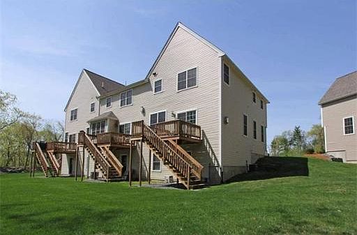 Come see the fantastic transformation - new paint, refinished hardwood floors & new carpet! **** $3,500 towards closing cost if you close by 12/31/14***** Newer townhouse is located at the end of the cul-de-sac with exceptional views of spacious grounds and woods. Inside is light & bright throughout! Living room with gas fireplace and slider to exterior deck. The kitchen is open and has maple cabinets, granite counters & stainless steal appliances. Lovely views from the dining room area that has extra large windows! Upstairs has two large bedrooms each with it's own full bath. Lower level is finished and walk-out for more family entertainment! All this and more located close to town, schools and major routes.