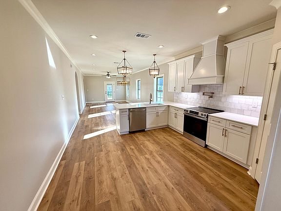 Beautifully crafted new construction in West Tupelo's highly desirable Harvesters Square neighborhood. This 1,700 sq ft, 3BR/2BA home with a large office features arched hallway openings that lead to an open-concept living/kitchen area. The kitchen features custom cabinets, quartz countertops, designer lighting, tile backsplash, pot filler, and high-end finishes. The spacious master suite includes a custom walk-in tile shower and a walk-in closet. Additional features include 2x6 wall construction, under-cabinet lighting, custom closets, a custom range hood, wood laminate Member of Sidco Construction LLC is an MS Licensed Real Estate Broker. All information is deemed reliable but not guaranteed.