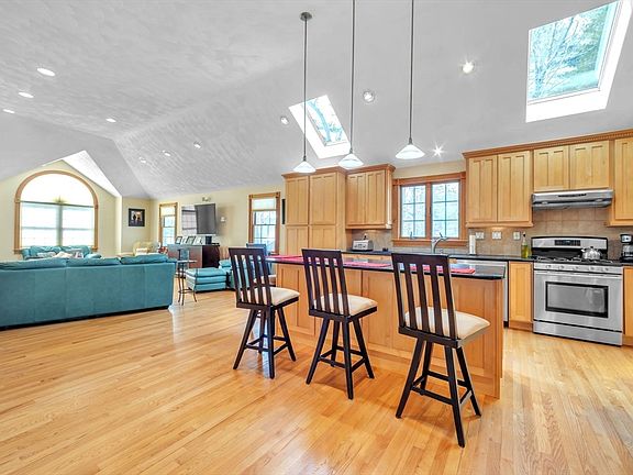 - Features: Skylight, Cathedral Ceiling(s), Closet, Closet/Cabinets - Custom Built, Flooring - Hardwood, Dining Area, Balcony / Deck, Pantry, Countertops - Stone/Granite/Solid, French Doors, Kitchen Island, Cabinets - Upgraded, Deck - Exterior, Exterior Access, Open Floorplan, Recessed Lighting, Slider, Stainless Steel Appliances, Gas Stove, Lighting - Pendant, Lighting - Overhead, Decorative Molding