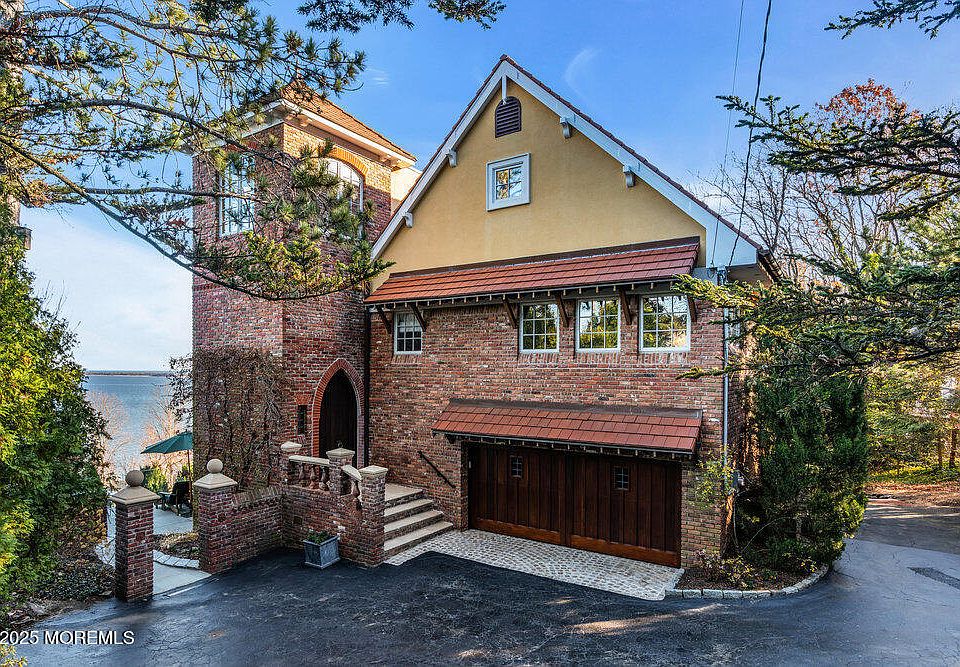 Tower House is a truly exceptional bluff-top residence defined by its iconic 35-foot architectural tower and its charming private vineyard of more than 100 vines. Inspired by classic English design, the home showcases handcrafted brickwork, salvaged Gothic doors, and timeless custom materials throughout. Perched above New York Harbor, this showcase property offers approximately 3,700 sq ft of refined living space where nearly every room captures sweeping water, skyline, and ocean views. The dramatic tower entry creates an unforgettable first impression, while the interior reveals soaring ceilings, custom millwork, and beautifully updated finishes. Outdoor living is equally impressive, with multiple Ipe decks, terraced stone gardens, and the vineyard enhancing the estate-like setting. The spectacular 1,300 sq ft master suite occupies the upper level of the tower, offering unmatched privacy, breathtaking sunrises, and its own private terrace. Tower House is where your fairy tale begins.