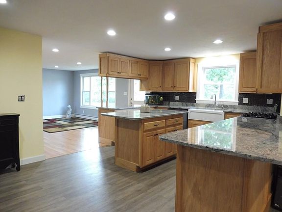Remodeled Cape with three bedrooms, 2.5 baths and oversized attached garage. Brand new eat-in kitchen with, granite countertops, SS appliances, island, breakfast bar & farmers sink. Front to back living room. Separate den / office overlooking the 3+ acres of cleared pasture. Convenient first floor master bedroom has two closets and full bathroom. 21x11 three-season room. This Cape has two hardwood staircases to the 2nd floor which features additional bedrooms, great room and half bath. Hardwood flooring throughout. Detached barn with power, water, several stalls and loft area. Entire property is fenced. Radiant heat, two basements, Harvey windows, Buderus furnace & water heater. First floor is handicap accessible. Ideal property for horses and farming. Corner lot! Close to NH. Open House, Sunday June 3rd from 12-2.